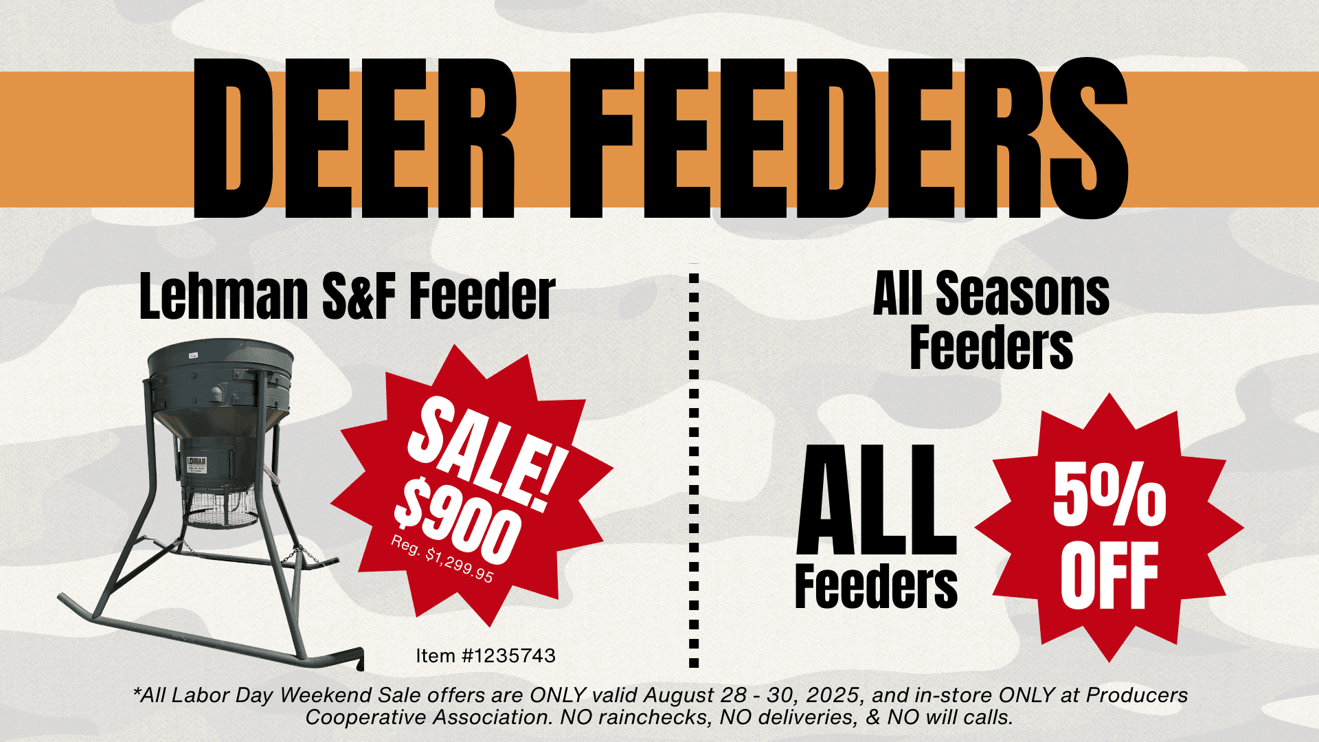 🎯 It’s that time of year again! 🎯 Get ready for huge savings on deer corn, feeders, and more during our Labor Day Weekend Sale! 🦌💥 Prices will be announced on August 27 — Sale runs August 28–30. Stay tuned… you won’t want to miss this!