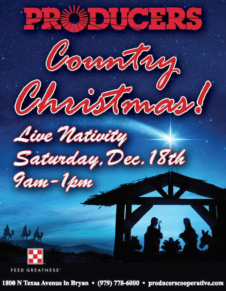 Mark your calendars for Saturday, December 18th for the Producers Country Christmas. A nativity scene with a live camel will be on site for photos from 9am-1pm on the Producers garden center patio. Christmas photo opportunities, reindeer feed mixing, hot cocoa and much more! Stay tuned for more information as we move into the holiday season.