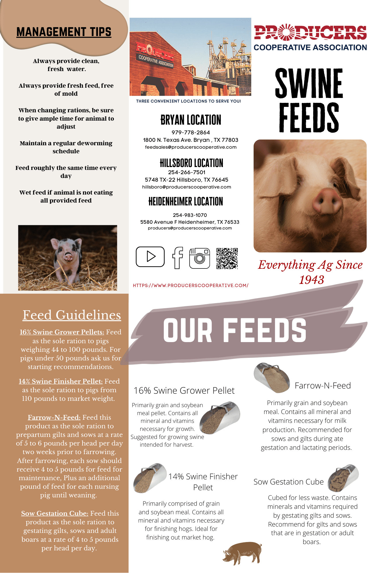 Have questions about where to start with our Feed & Nutrition? Download any of the PDF's below to learn what feeds we recommend and other feeding management tips.